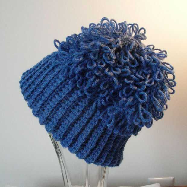 Sombrero azul loopy. De punto en color Denim de libras de amor. Este sombrero comenzó con este patrón "Un poco descabellado Hat"