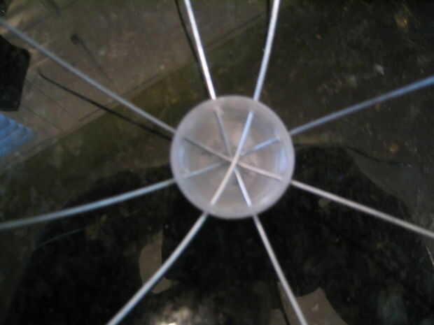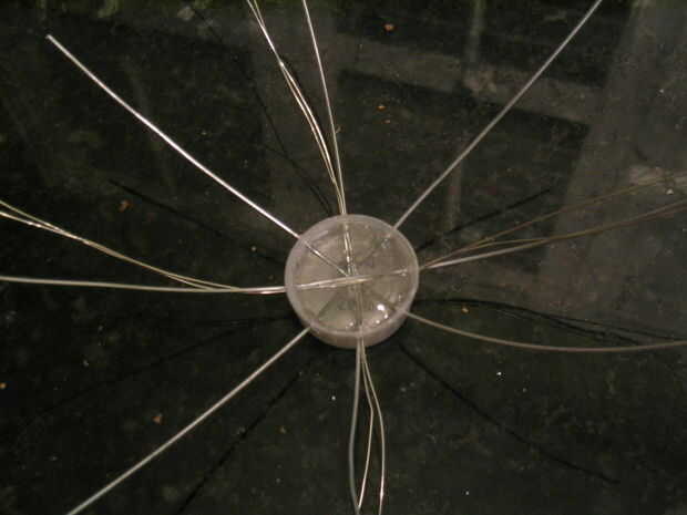 Cuando esté satisfecho con la colocación de los cables, darles un pequeño empujón en el punto de encuentran de todos los cables en el centro de la tapa. Esto ayudará a mantenerlos seguros mientras que llenar la tapa con pegamento caliente.