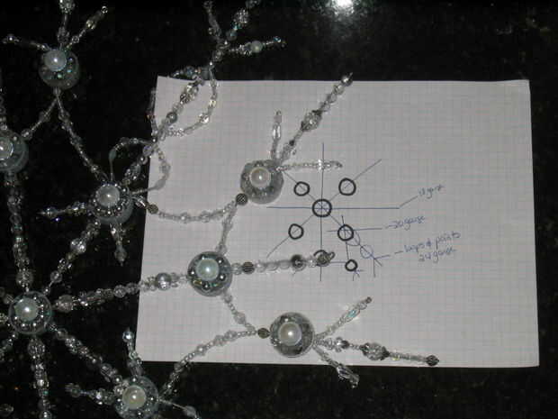 Para crear algo en esta escala, usted realmente necesita crear un plan. Si usted toma tiempo para sacar lo que quieras tu copo de nieve parece, entonces, usted sabe donde se dirige. Asegúrese de averiguar donde vas a insertar los cables más pequeños para los bucles, donde vas a añadir soporte tapas de soda, y donde vas a colocar un punto a otro. También es una buena idea para planificar los orificios en los soporte tapas de soda. Recuerde, usted tiene 24 lugares en cada tapa. Usted puede hacer fácilmente un cable ir en cualquier dirección que puedas imaginar.