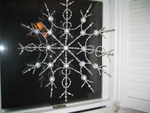 Para este diseño que empecé con el mismo centro de los copos de nieve más pequeño desde que utilizan 18 calibrador de piezas de alambre que fueron 30 pulgadas de largo.