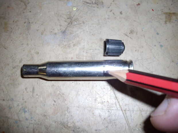 El diámetro interior de una concha de bala cal. 40 pasa a caber muy bien sobre un casquillo del vástago de válvula. Sólo que tienes que golpear la cáscara sobre la tapa con un martillo. Éstos salieron al mismo amigo que tiene el lápiz retráctil de la