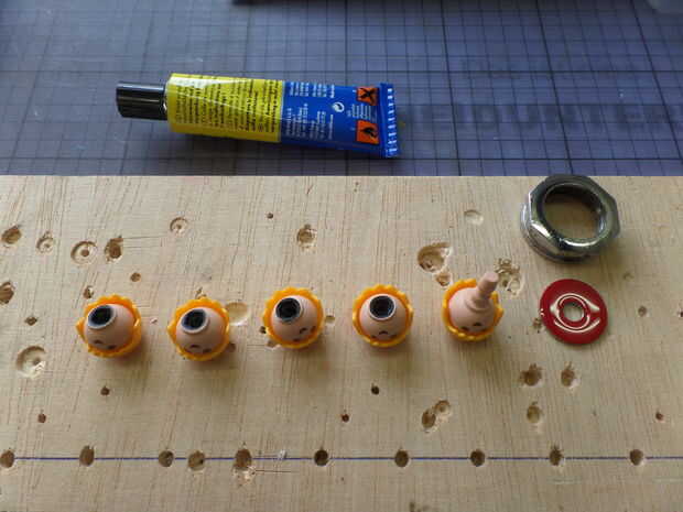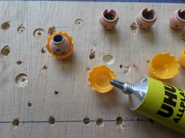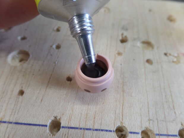 Pegar la tapa de la válvula, para que quede alineada con el cuello. Girar la cabeza, vierte pegamento y permiten establecer (mejor durante la noche).