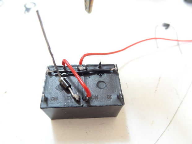 -Conectar el pin normalmente abierto del otro relé con el conector de entrada de la que uno que elige que tiene el diodo.