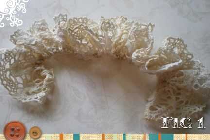Corte una longitud de 4 pies de cordón. Con tu aguja e hilo, bien reunir un lado del cordón. Nota: Si el cordón tiene un aspecto inacabado o previamente se reunieron, coser a lo largo de este borde. Aunque previamente recogida quiere reunir el encaje tanto como usted puede.