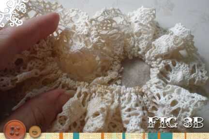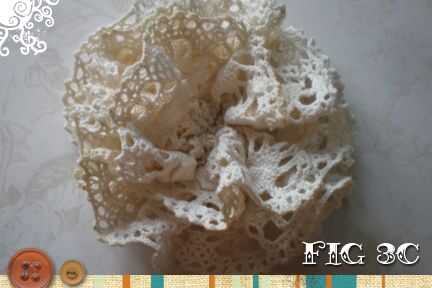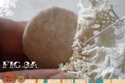 Utilizando el círculo de fieltro de 1.75" como base, empezar a coser la recogida del cordón al fieltro. Asegúrese de empezar por fuera, envolviendo el cordón alrededor y hacia el centro.