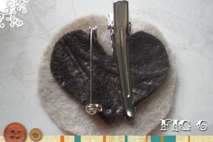 Caliente pegar el clip gator al lado de la clavija y acabar con la parte trasera pegando caliente el corazón de fieltro en la parte posterior del clip de gator y pin.