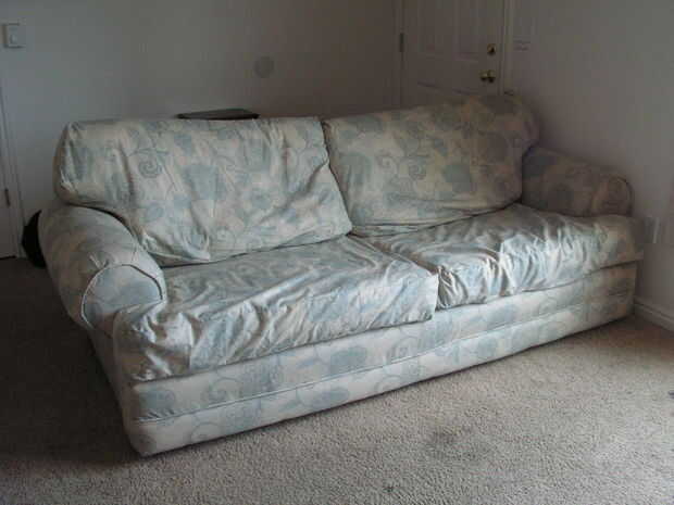 Nuestras piezas de cojines terminaron un poco holgados para el relleno, que sólo compró más acolchado, corte a la forma de la almohadilla y se hizo para los amortiguadores un poco más altos. Otra nota es que puede que necesite reemplazar el relleno, este sofá tenía buen acolchado en forma decente, pero he hecho canapés antes de que el relleno empieza a desintegrarse y necesita reemplazar o donde el viejo sofá no era cómodo y añadido o cambiado el relleno para hacer el sofá más amigable. Usted puede añadir otros adornos como tachuelas de tapicería para cambiar el aspecto aún más.
