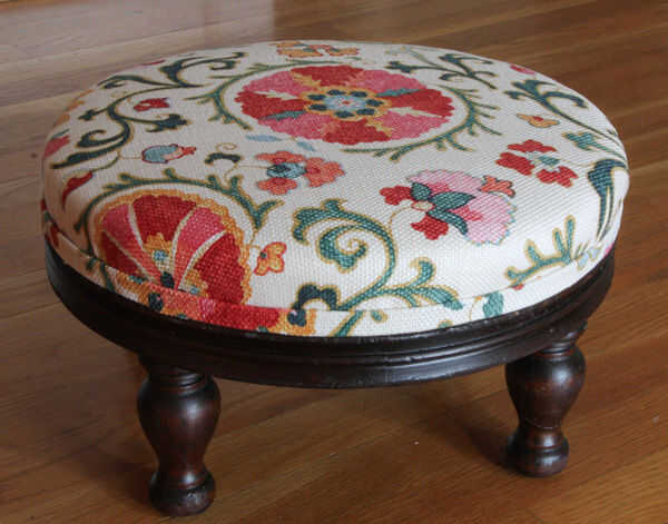 Resulta que, después de un poco de investigación local, este taburete perteneció a un prominente médico de Indianápolis en los años 20 tempranos y cuesta $5,00 para hacer. TLC un poco actualizado, había renovado y había convertido este taburete viejo, rota en una joya brillante. Observe el cordón elegante welt plana hecha de tela, pegamento y cartulina bordada de la tira. Si quieres que este banquito para su hogar, usted puede adquirir aquí en mi tienda de etsy, FliptStudio.