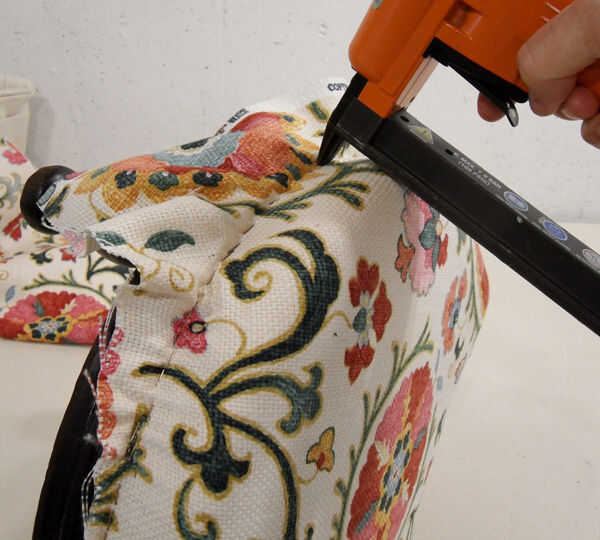 Comienzan en un lado grapado la tela y hacia los lados opuestos, tirando el tejido tenso y grapas en su lugar, alisar como usted de la grapa.