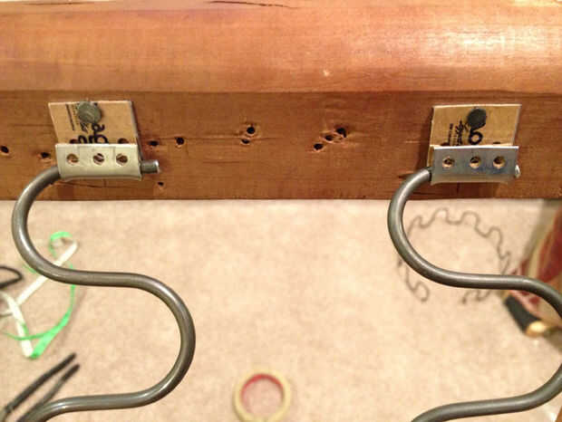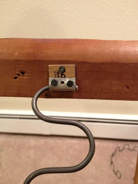 Cada clip sobre el uso de un clavo, a través del agujero de centro de uñas. Los muelles zig-zag vienen en espiral y tienen elasticidad en la dirección de la bobina así como la dirección de zig-zag, por lo que los clips deben colocarse para tirar los muelles aparte en lugar de empujar juntos como sería si fueran normalmente rectas. Una vez que los clips se clavó, encuentra un manantial en el clip inferior y tire hasta la pinza superior. Entonces ponen en dos clavos más cada clip, doblar el clip hacia abajo sobre la primavera y sostiene firmemente en su lugar.