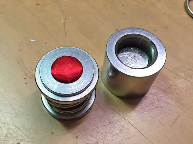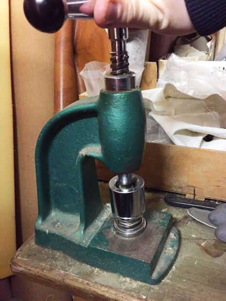 Coloque el troquel en la máquina de botón y presione firmemente.