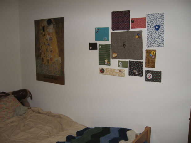Para tener una idea alternativa puede conectar botones y alfileres a las piezas. Mina se ve muy limpio y ahora tengo un lugar para mostrar mis botones. Cuando quiero ponerme uno puedo elegir fuera y luego adjuntarlo al final del día.