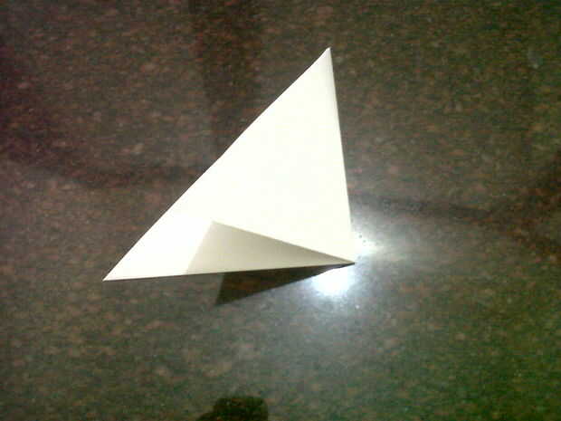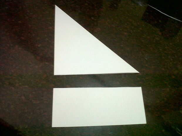 Agarra a dos documentos de tamaño A4 y doblarlas como se muestra en la imagen. Corte la porción rectangular distancia modo que u termina con un triángulo. Ahora doble el triángulo en la mitad como se muestra en la imagen.