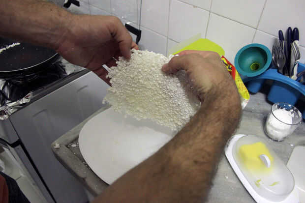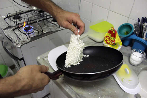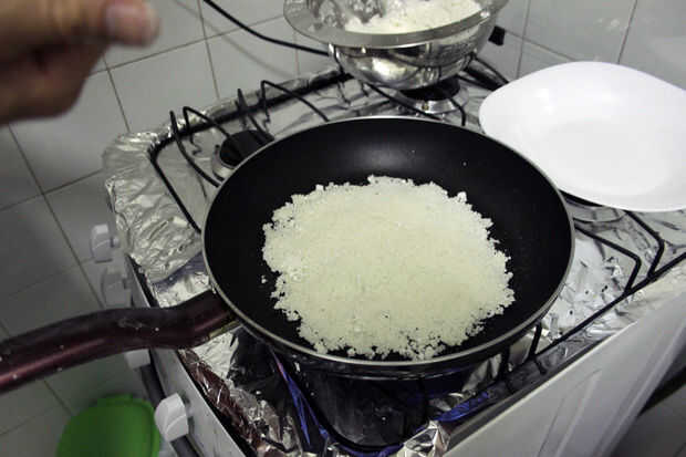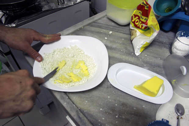 Cocinero un tiempo ambos lados hasta que el palillo mojado power juntos, entonces lugar en una placa y propagación mantequilla por un lado Dóblalo y terminó!