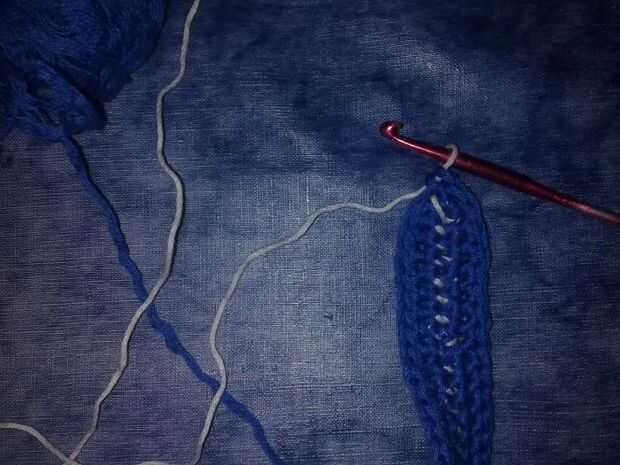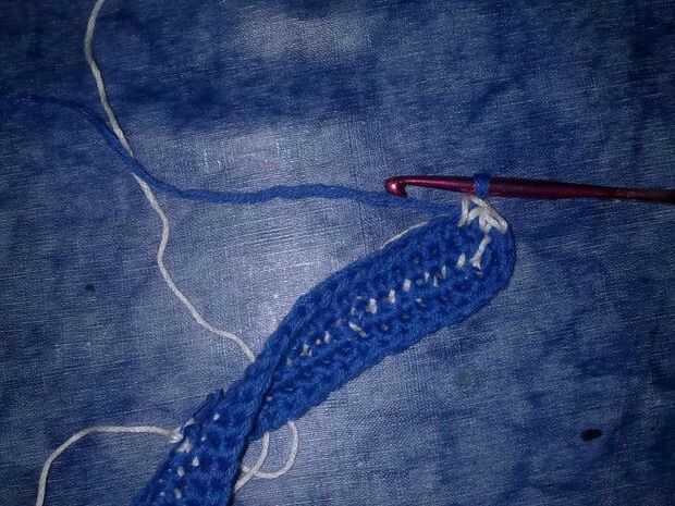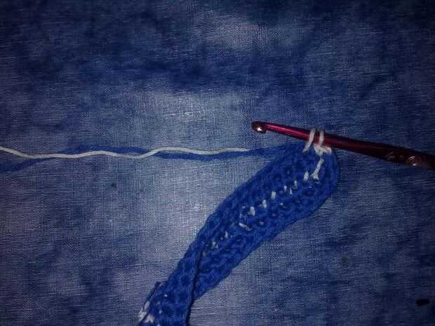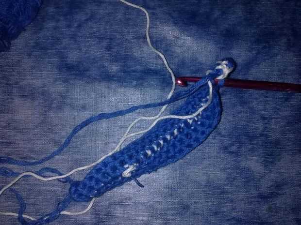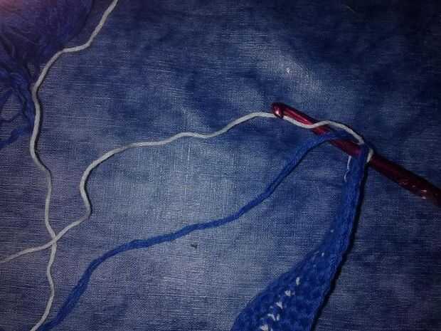Al cambiar de color en crochet de tapiz, el 4to paso se hace dibujando el hilo de color diferente. Simple, ¿no? "Cerrar" la sc con el otro color.