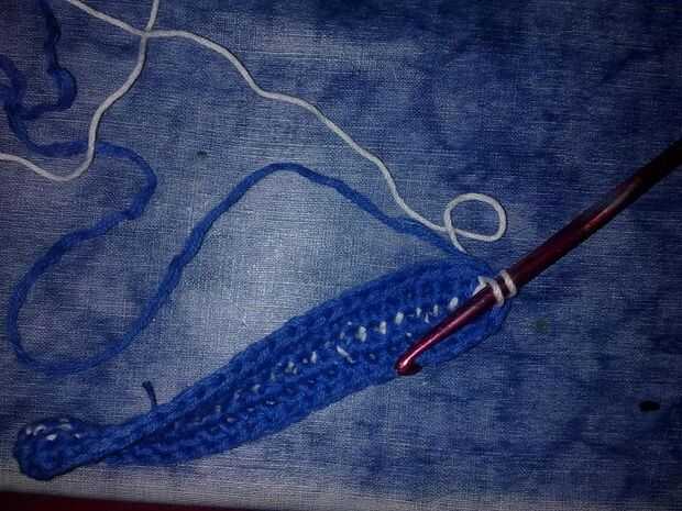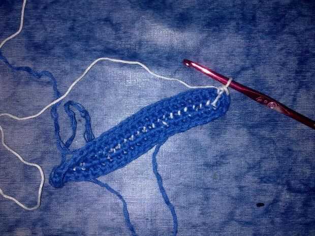 - dibujar el hilado a través de 2 bucles en el gancho