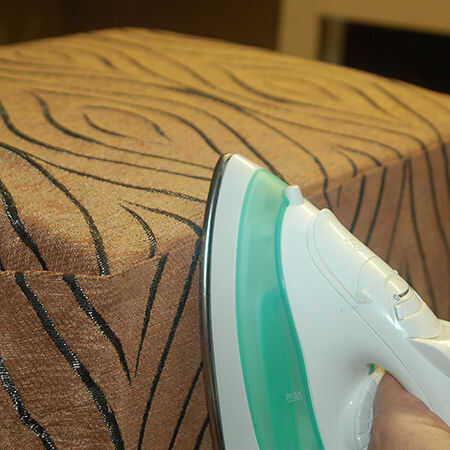 10. hierro al borde de la tela sobre el borde de salida, asegurándose de alinear con la esquina de la caja de modo que esto es apenas visible una vez finalizado el otomano.