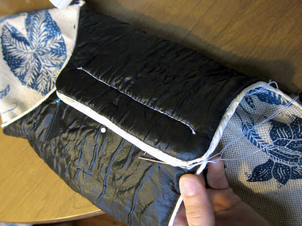 El caso la vuelta adentro hacia fuera y mano coser la otra mitad de la aleta del centro hasta quitar extra a granel.