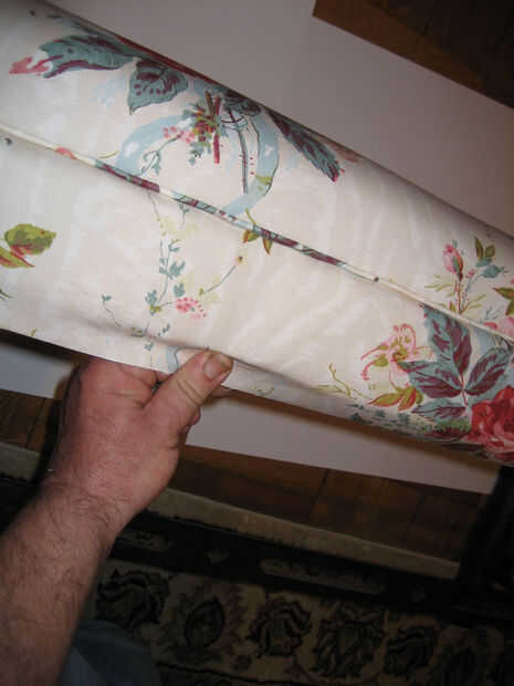 Corte tiras largas de tela diagonalmente y coser un trozo de cuerda en el medio para el ribete decorativo. Usted puede comprar confeccionado welting demasiado. Afortunadamente sólo puede usar una engrapadora para colocar las piezas en su lugar. Luego un panel bajo el ribete de la grapa y grapa el otro borde en la parte inferior de los muebles.