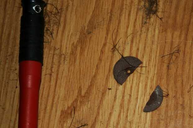 Decido que usaré mi disco de corte de la herramienta giratoria para cortar rápidamente a través de la cadena de colocar el pelo a la capa de saqueo.