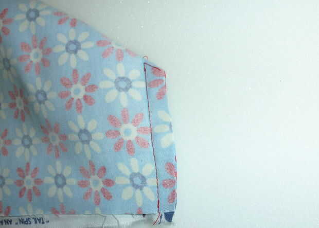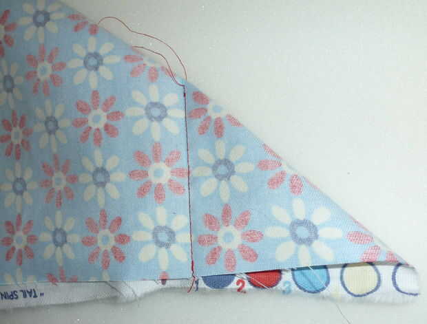 Marque las cuatro esquinas de su cojín, y si lo desea, puede coser las esquinas para que encaje perfectamente en la tapa y las esquinas permanecer firmemente. Utiliza una puntada recta y luego recortar el exceso, como en las fotos. Para algunos más debates de este proceso, usted puede sacar mi mantel instructable.