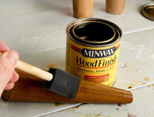Para actualizar las torpes patas de madera, un elegante conjunto de patas cónicas y angulosas para hacer este mediados de-siglo otomano oval digno de la mancha.
