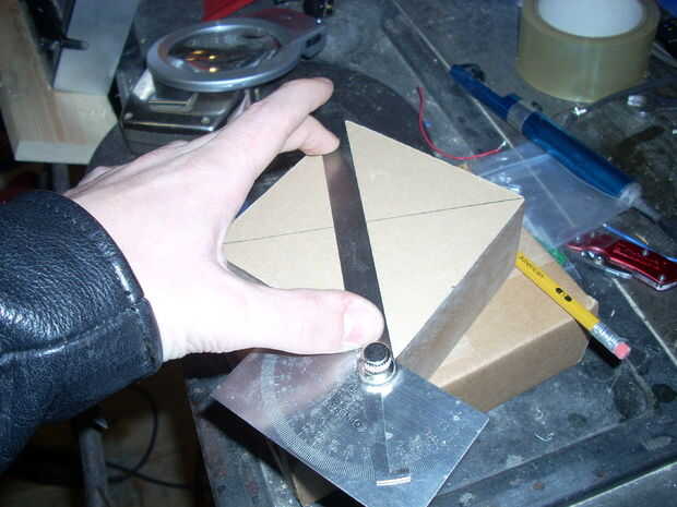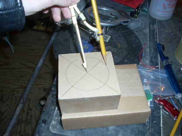 A continuación, mida el diámetro de su puerto de entrada que va tapando. La mía es un puerto de entrada de 3", va a necesitar establecer mi brújula en el radio, 1 1/2". Empuje el punto de la brújula dentro de las líneas que se cruzan en el bloque de acrílico y dibujar el círculo. Ahora, agregar sobre un 1/4" a la medida del radio de su brújula, querremos una pestaña para evitar que el enchufe se hunda completamente en la ingesta. Marcar el círculo de la misma manera. Voltee el bloque de acrílico y hacer el mismo círculo en el otro lado, esto (y las líneas) le ayudará a centrar la placa de montaje en el acrílico.