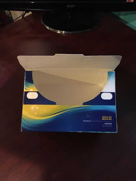Sin rasgar el cartón, cuidadosamente abra la caja grande de tampones de la parte superior deslizando el dedo debajo de la aleta.