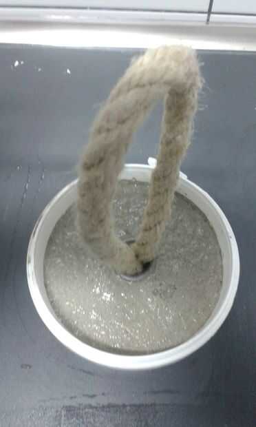 Para preparar concreto mezcla simplemente siga el manual de usuarios de los embalajes y revuelva bien juntos y rápidamente puso la mezcla en los moldes. Sacudirlas un poco y toque en la parte inferior para eliminar las burbujas. Cuando el concreto empieza a instalarse, cuidadosamente sumerja el acoplador con una cuerda en medio de su molde hasta la parte superior. Manténgalo en esa posición hasta concreto consigue espesar un poco, por lo que la cuerda permanece en su lugar. Me tomó menos de un minuto para mi, pero supongo depende de un tipo concreto, asi que tengan paciencia ya que es muy importante mantener la cuerda en la posición correcta en esta etapa.