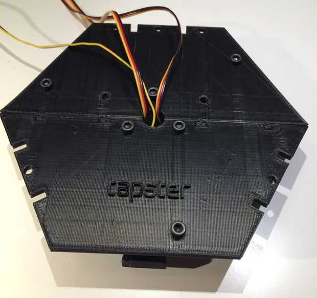 - La parte más larga del brazo de montaje de servo es a lo largo del borde exterior de la placa superior. Debería ver los imanes de los brazos de servo en el exterior