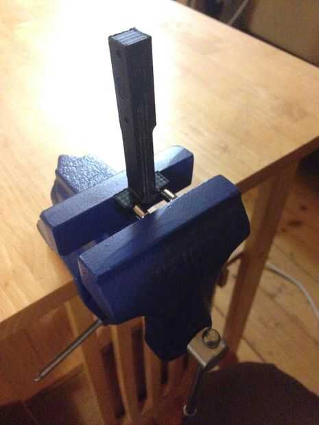 - Con la otra mano, comience a apretar el tornillo de banco, asegurando que los imanes son correderas en los orificios del brazo de Servo