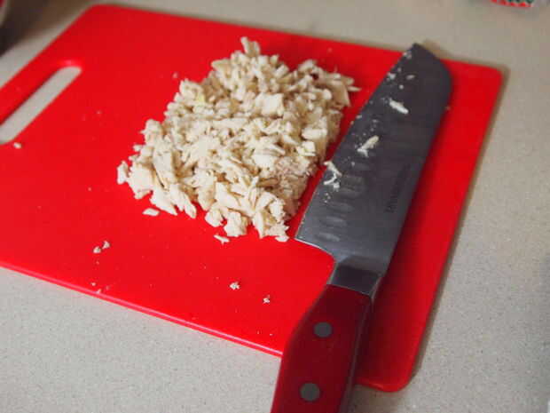 Cosas que necesitaráTaquitos de pollo del sudoeste el MontereyQueso de mezcla mexicanaTortillas de harina de 8 pulgadasCilantroCebollas rojasJalapeñosTiras de tortillaSrirachaSalsa cremosa de ChipotlePaso 1: Preparación de verduras Tip #1 tiras de To
