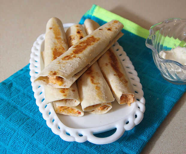 Estos taquitos de pollo son cremosos, cursi y lleno de sabor del taco! Son abundantes, relleno y grandes para una rápida cena o merienda día de juego! Que pueden ser fácilmente congeladas, por lo que son un gran bocadillo de la escuela, o solución mu