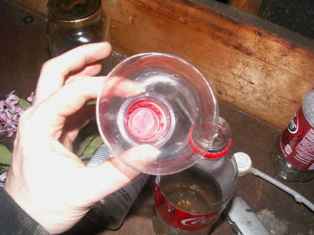 Ahora tomar la botella pop y fuerza dentro de la botella de agua de la vitamina.  La tapa de la botella pop encaja perfectamente en el cuello de la botella de agua.