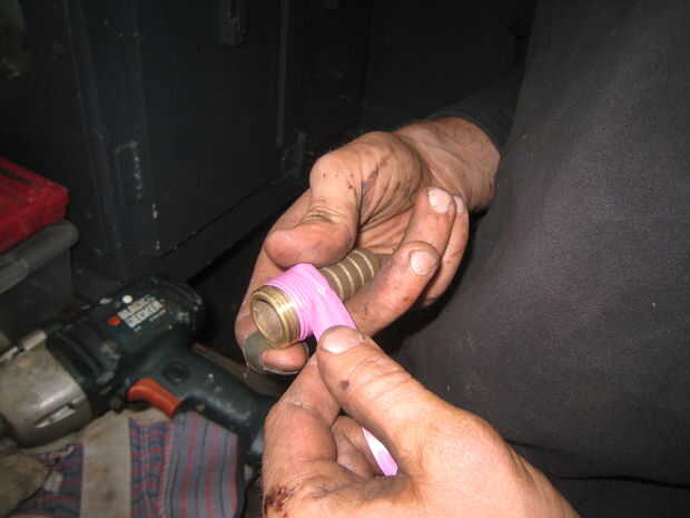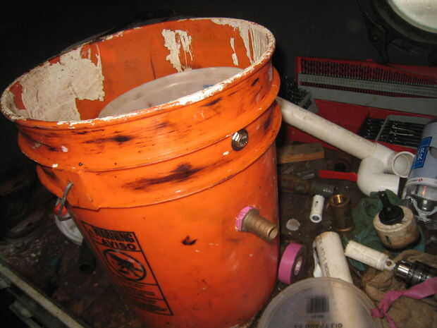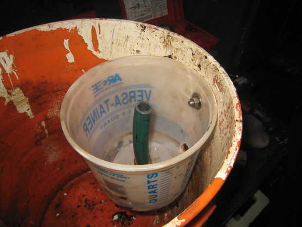 Lo que no ves en esta imagen es el tubo que alimenta en el fondo del recipiente poco claro en el centro. No tomamos un TI de imagen. Nada personal, sólo trabajando rápidamente. Es un tubo que conduce cerca pero no tocar, la parte inferior del cubo naranja. Lo siento sobre eso. Allí pensamos que estábamos tomando tantas fotos.
