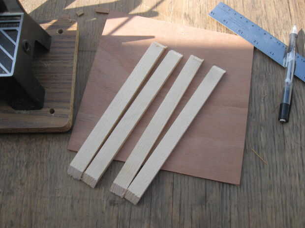Usted se necesita a 45 grados de bisel ambos extremos de una tira de pino grueso pulgadas de trimestre que es 200mm de longitud