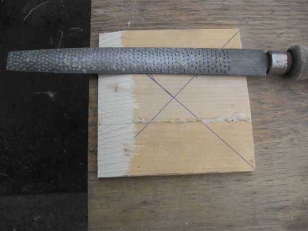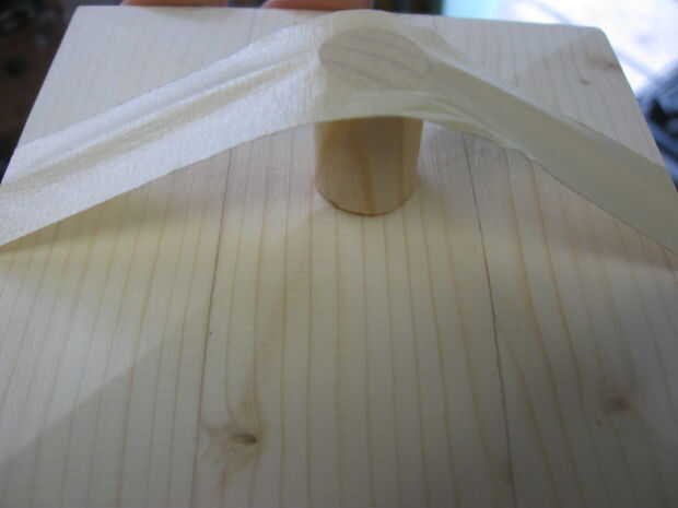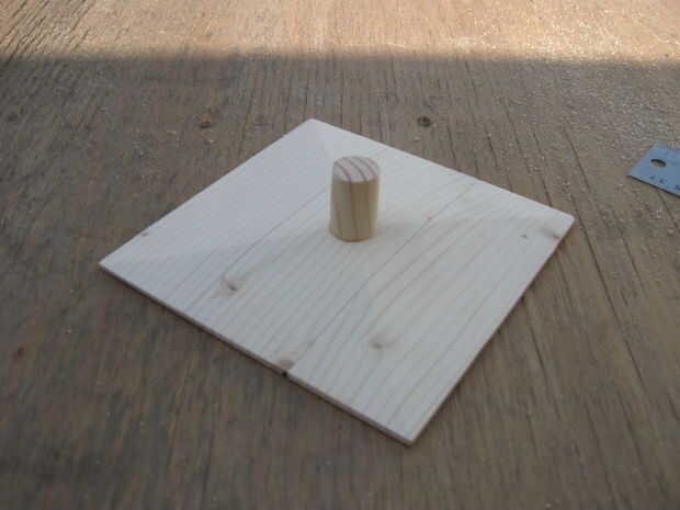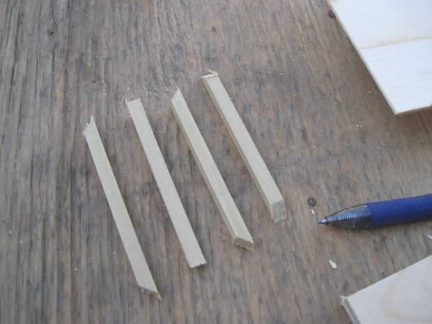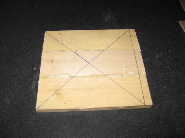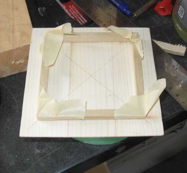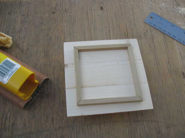 luego se corta y cola pequeñas tiras de pino para formar un cuadrado que es ligeramente menor de 73mm por cada lado.