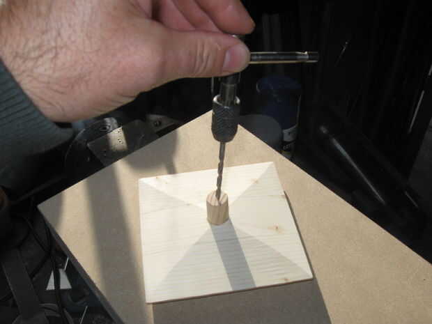 Coloque una broca de 1/8 en un mango de grifo y mano taladro a través del centro de la luz hasta el techo.