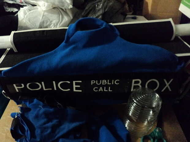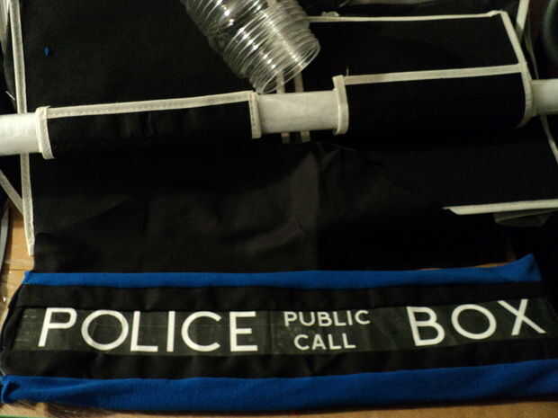 Cortar una pieza de forma triangular de tela en la silueta de la cubierta inclinada de la TARDIS.