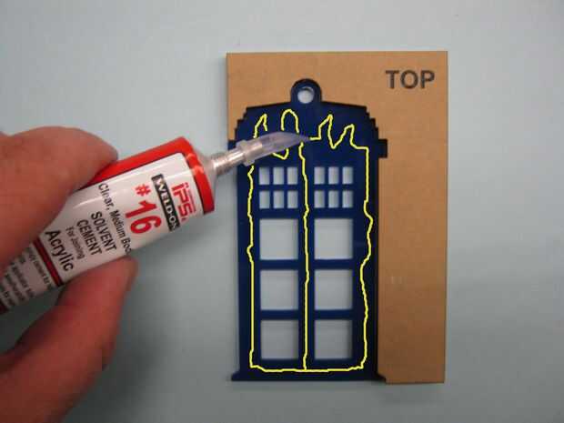 - Usando una boquilla fina en el tubo de cemento, aplicar el cemento a la pieza como se muestra en amarillo en la segunda foto. No aplicar el pegamento - una tira fina va a estar bien. Mantener el grano del cemento en el centro como se muestra.