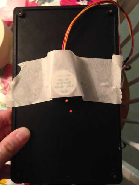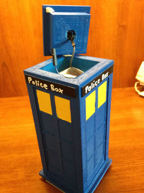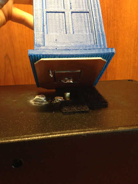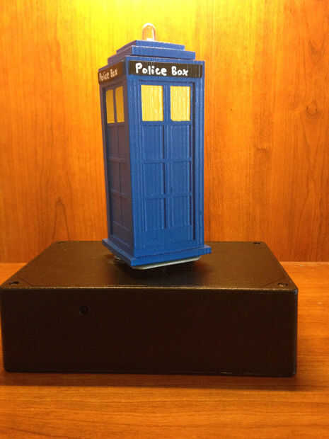 Quinto: En la tapa de la caja negra, si pones dos cables que salen del mismo lado del motor paso a paso (como yo) se necesita agregar los cojines de muebles al otro lado de la caja para que el tardis permanece nivel al spinning.