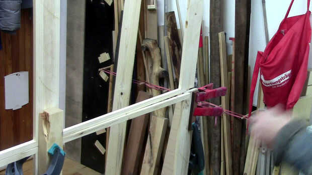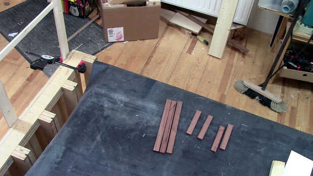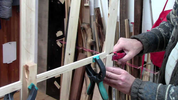 Para bloquear el marco superior y marco inferior juntos utilicé algunas piezas extras de madera dura.
