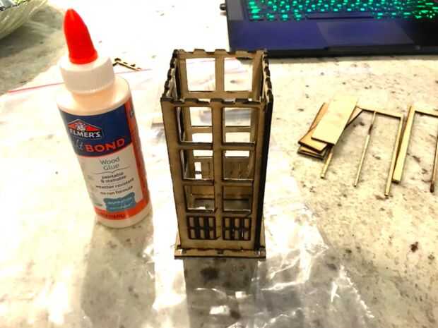 Haceos pedazos con cara chamuscada. Tenga en cuenta el espesor de dos y dos marcos de puerta delgada que forma la base. La secuencia es gruesa fina-gruesa fina. Puertas interiores anidan dentro de otras. La base es asimétrica para las puertas. Un ajuste de secado rápido asegurará de piezas en el correcto lugar. Los centros de puerta deben estar centrados exactamente entre sí.