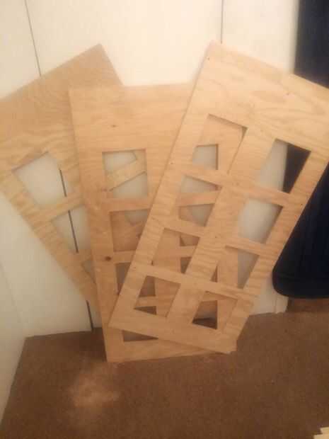 Cortar las piezas en la madera contrachapada y 1/8" de madera. Las aberturas en la madera, como puede haber adivinado, son crear el efecto de "panel" en el exterior. Puede que desee a ronda las esquinas exteriores de los agujeros en la madera, si tienes un router. No tener uno, yo simplemente lijar los bordes.
