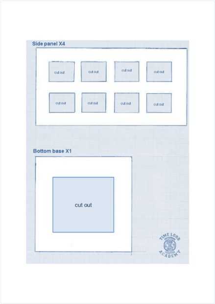 Imprimir las plantillas sobre papel. Corte éstos hacia fuera; Estos actuarán como plantilla para cada uno de los componentes de la TARDIS. Mantenga las piezas impresas. Éstos se unirá más tarde (si se desea)