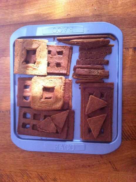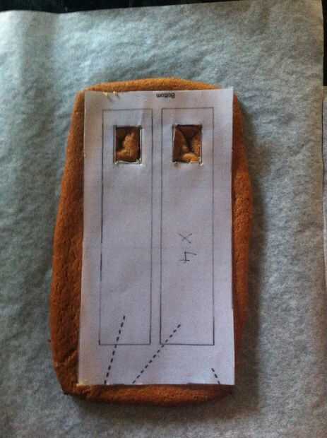 El pan de jengibre habrá ampliado ligeramente en el horno y ahora será las dimensiones mal. Para rectificar este gingerbread es todavía caliente volver a corta las piezas utilizando las plantillas previamente hechas. Sierras de corte de acción es preferible ya que gingerbread es propenso a romperse bajo tensión.
