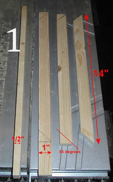 (Cuadro 1) Ahora vas a volver al 1 "x 1/2" mejores piezas se corta antes. Yo sugeriría seco colocándolos todos antes de los 45 grados corte. uno a la vez colocándolos (Foto 2) en la parte superior para asegurarse de que son un ajuste de ajuste. Tal vez debería decir realmente muy ceñida. Entonces antes de ellos sacar marca de qué lugar venían (se puede ver mina marcado en el cuadro 4). Usted puede encontrar sus dimensiones son un poco fuera y quizás tenga que probar la pieza superior en unos lugares para ver donde encaja mejor.