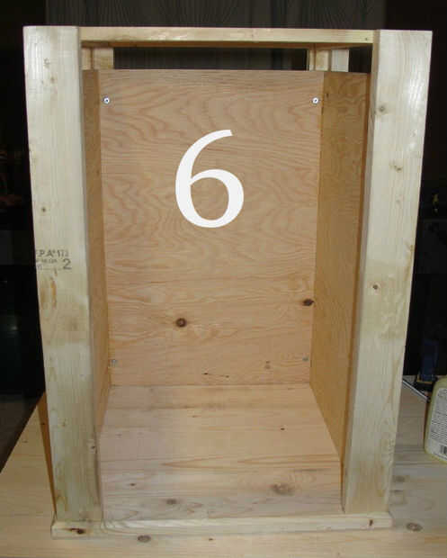 (Imagen 6) Una vez que todas las piezas superiores se pegan en su stand debería verse como esto. la pieza superior debe quedar al ras con la parte superior de los postes esquineros.