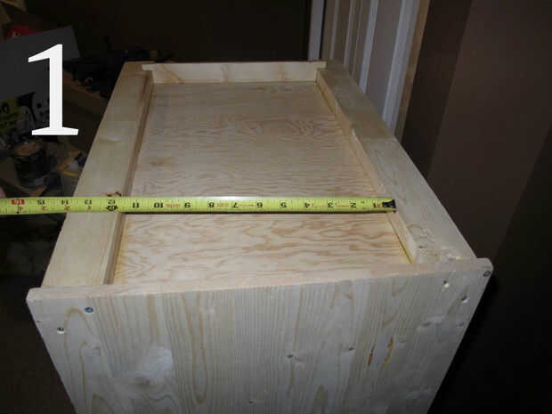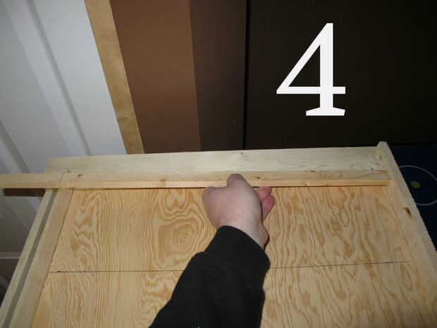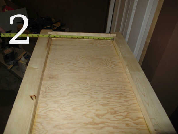 (Imagen 4) Ahora podía medir desde la parte superior de la base a la parte inferior de la caja de la señal... O usted podría apenas como yo lo hice sosteniendo un pedazo de moldura en su lugar y marca de donde cortar. A veces la pereza tiene sus recompensas... Asegúrese de sostener la parte inferior de la moldura de la pared lateral en la base para que la pieza de adorno es relativamente paralela a la pared cuando vayas a marcar para el corte. Si usted no le encontrarán sus piezas siempre son demasiado largos cuando se cortan.