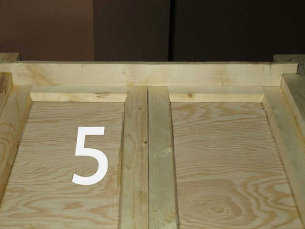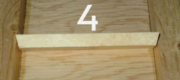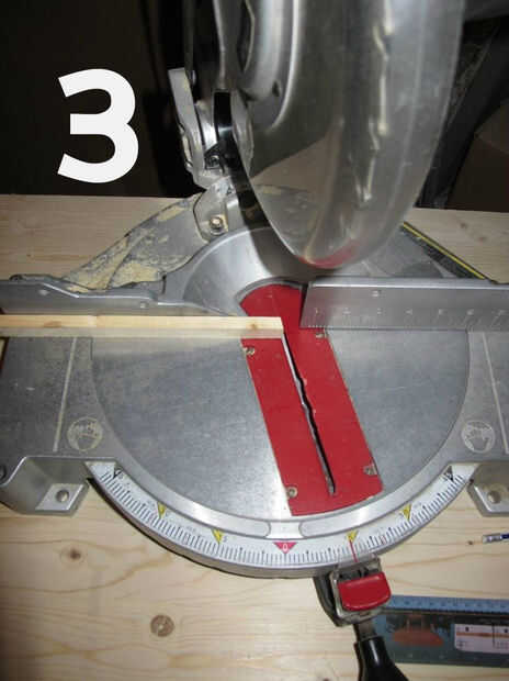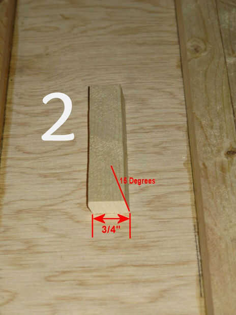 (Imagen 3 y 4) Utilicé una sierra de corte para cortar los extremos en ángulo de 15 grados necesario para que ajuste los ajustes entre la moldura ya instalación (cuadro 5). Encolar y sujetar abajo estas piezas antes de proceder.